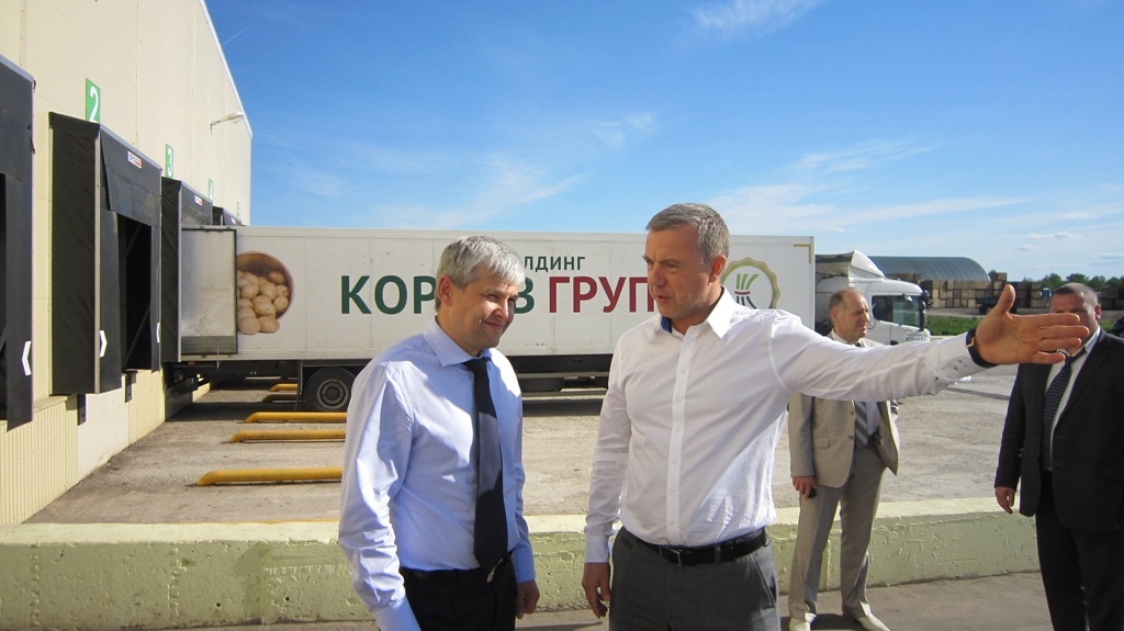 Руководитель холдинга, специализирующегося на выращивании и хранении картофеля, овощей, зерновых и технических культур, Михаил Корнев представил Петру Колтыпину поливные плантации, где завершается посадка «второго хлеба», ознакомил с технологиями подработки, хранения, фасовки картофеля, моркови и свеклы, показал элеватор на 20 тыс. тонн единовременного хранения.