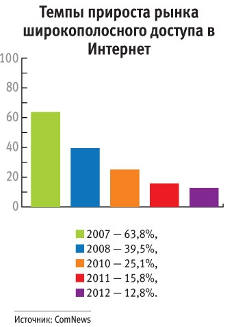 Разница между ростом объема потребляемого по всей стране трафика (и наш регион не исключение) и ростом количества абонентов растет серьезными темпами. По данным главного редактора группы компаний ComNews Леонида Коника, которые он озвучил в конце прошлого года, ждать дальнейшей консолидации рынка фиксированного широкополосного доступа (наиболее популярный канал доступа в Интернет) от российских игроков не приходится. Темпы прироста буквально обрушились (см. инфографику).